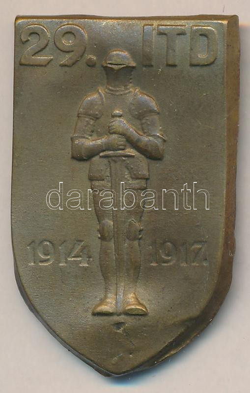 Austro-Hungarian Monarchy 1914-1917. "29. ITD 1914-1917" tombac cap badge maker: Entw.Dr.R.Frohlich Ausgef. Atel.G.Gurschner Wien VII/2 (40x29mm) without pin C:XF