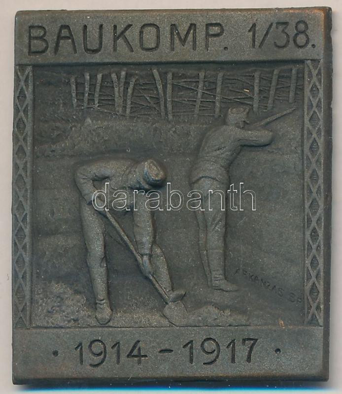 Osztrák-Magyar Monarchia 1914-1917. "BAUKOMP 1/38 - 1914-1917" cink sapkajelvény (36x31mm) készítő: ARKANZAS BP.; tű nélkül T:2