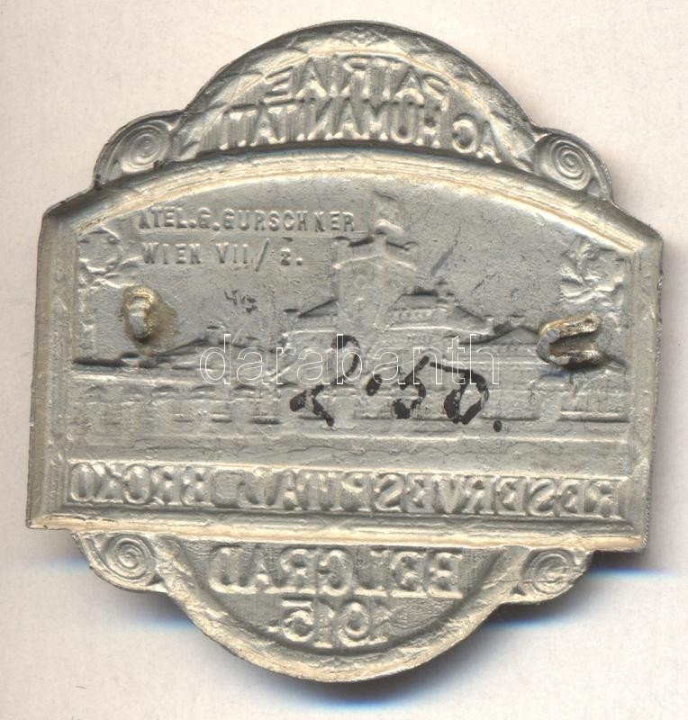 Austro-Hungarian Monarchy 1915. "PATRIAE AC HUMANITATI RESERVESPITAL BRCKO BELGRAD 1915" silvered tombac cap badge maker: Atel.G. Gurschner Wien VII/2 (43x40mm) without pin C:XF