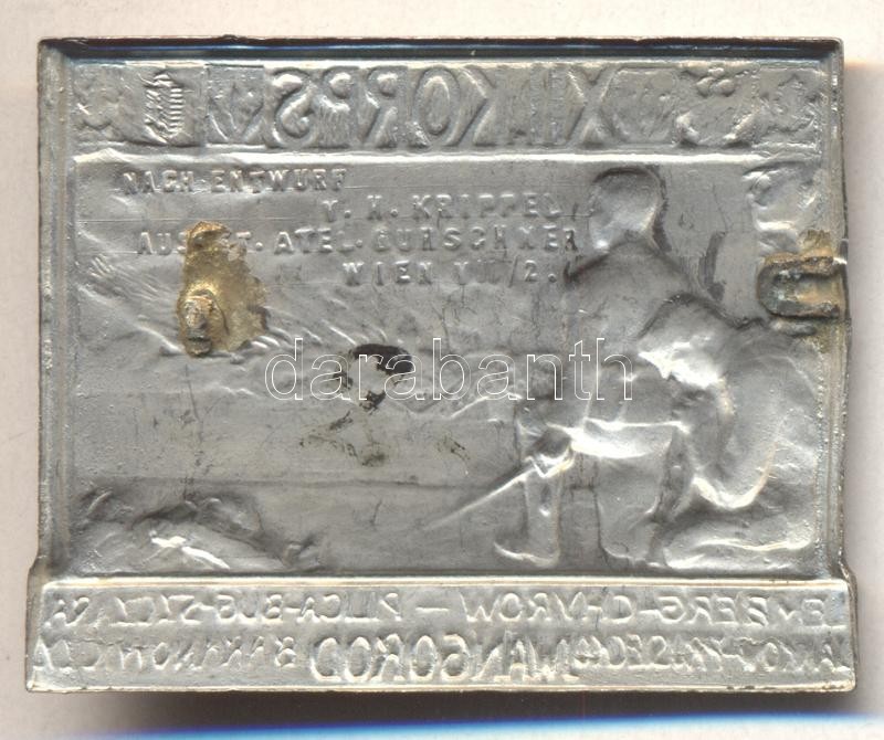 Osztrák-Magyar Monarchia ~1916. "XII. Hadtest" ezüstözött cink sapkajelvény (30x37mm) készítő: "Nach Entwurf v. H. Krippel Ausgef.Atel.Gurschner Wien VII/2"; tű nélkül T:2
