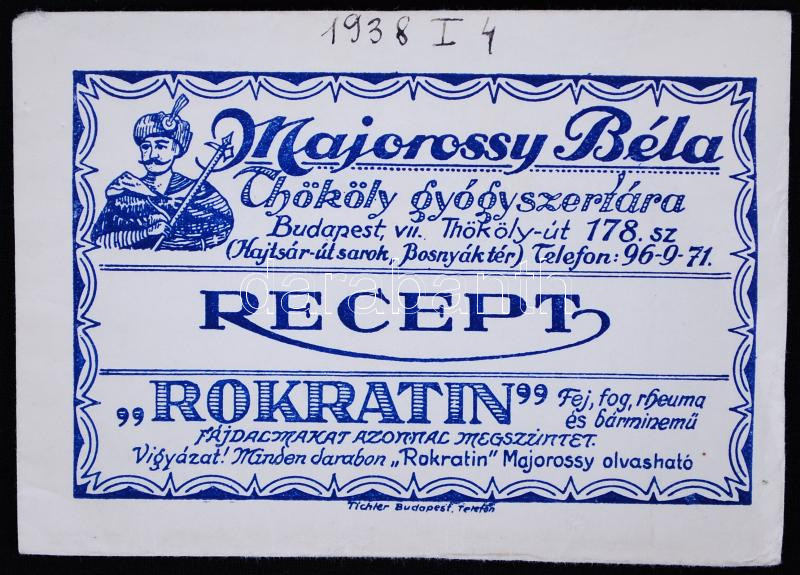 https://www.darabanth.com/en/181-Online-auction/181.0/Other-collectibles/Advertisement~200038/1938-Budapest-XIV-Majorossy-Bela-Thokoly-Gyogyszertara-Thokoly-ut-178-reklamos-receptb~II646212