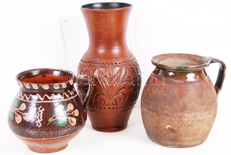 3db régi, népművészeti kerámia köcsög, különböző állapotú /