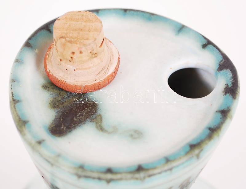 Dugós-füles kiöntő, mázas kerámia, jelzett Gorka Iparművészeti Vállala...
