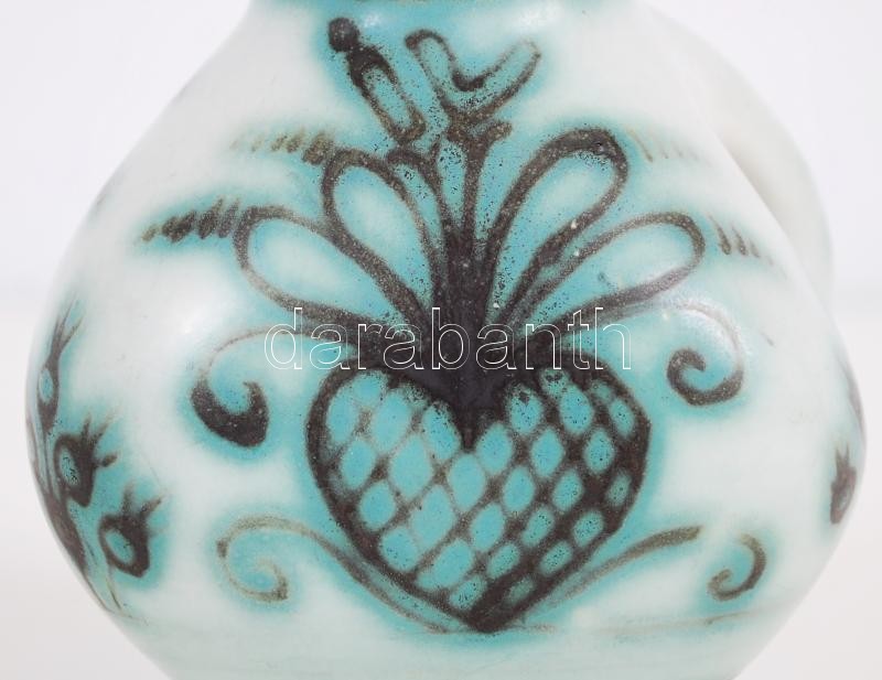 Dugós-füles kiöntő, mázas kerámia, jelzett Gorka Iparművészeti Vállalat, hibátlan, népies díszítéssel, ritka, m:16