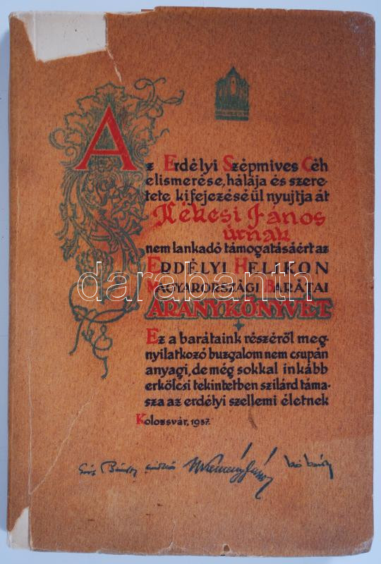 Az Erdélyi Helikon Magyarországi barátainak Aranykönyve. Kolozsvár 1937. 240p. Borítón kisebb hiányokkal