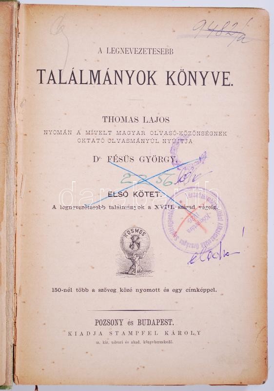 1. köt.: A legnevez... https://www.darabanth.com/en/181-Online-auction/181.0/Other-collectibles/Books-Science-and-thechnology~200014/Fesus-Gyorgy-A-legnevezetesebb-talalmanyok-konyve-3Cbr3E1-kot-A-legnevezetesebb-talalman~II648777