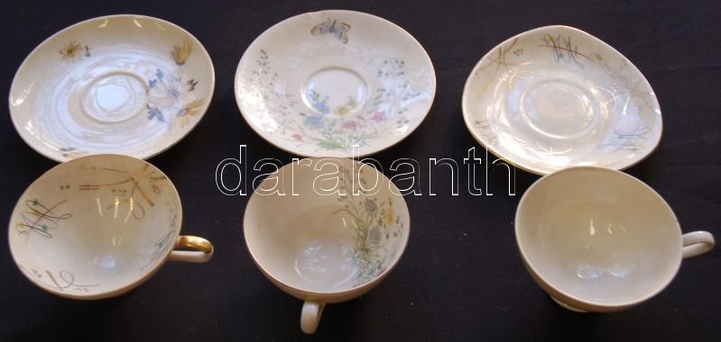 3db klf német Bavaria porcelán teás csésze hozzávaló tányérral (apró lepattogzások)