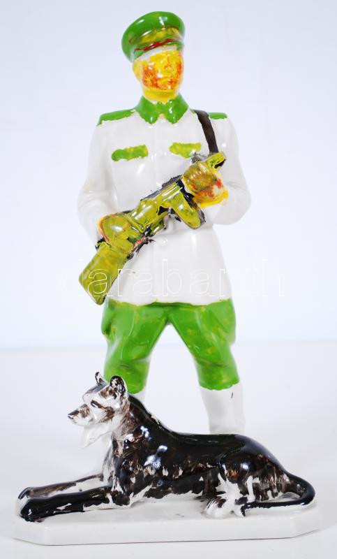 Határőr, jelzés nélkül, törött puska, kézzel festett, m:27 cm