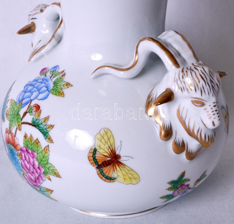 Viktória mintás, kézzel festett nagyméretű kosfejes Herendi porcelán váza /