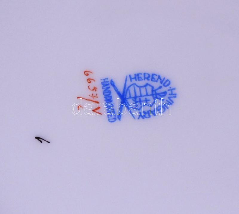 Viktória mintás, kézzel festett nagyméretű kosfejes Herendi porcelán v...