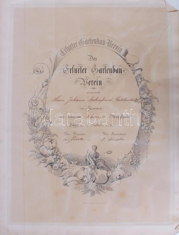 1861 Az Erfurti Kertépítő Ipartestület: Képviselői tagsági oklevél Sie... https://www.darabanth.com/en/181-Online-auction/181.0/Other-collectibles/Documents~200034/1861-Az-Erfurti-Kertepito-Ipartestulet-Kepviseloi-tagsagi-oklevel-Siebenfreud-nagyszombati-~II615470