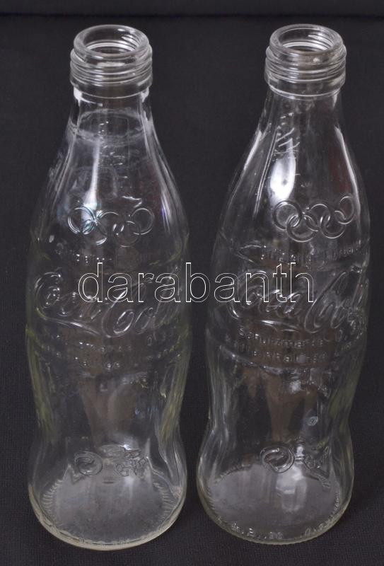 Description: 1996 2db német nyelvű reklámos üveg az atlantai olimpia hivatalos támogatójaként szereplő Coca-Cola gyártól, úszás és vitorlázás emblémákkal /