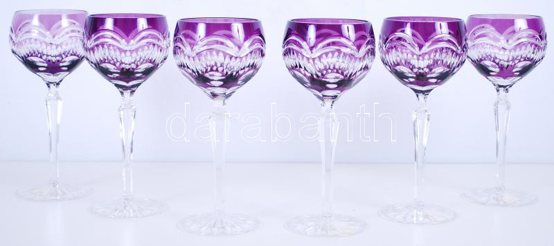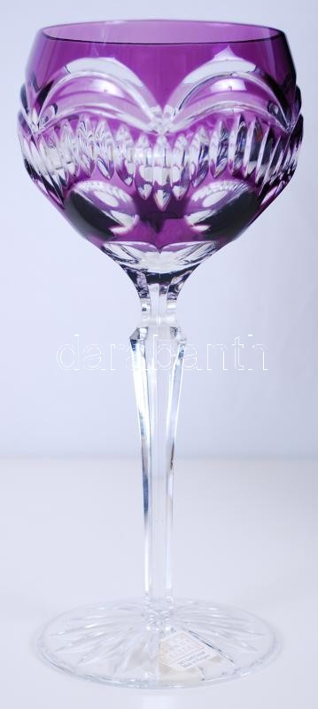 Ólomkristály boros készlet, több rétegű, jelzett, csiszolt, metszett, hibátlan, m:22 cm / Lead crystal wine glass set