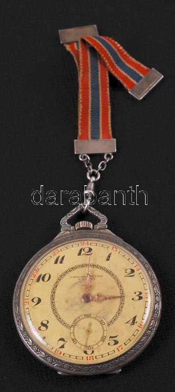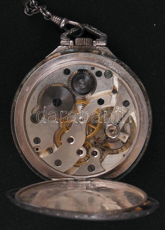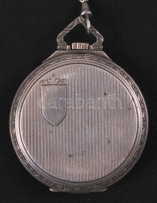 Description: 1893-1934 Chronometre Sabina svájci ezüst (Ag) art deco zsebóra duplasoros számlappal, másodpercmutatóval, óralánccal, jól jár /