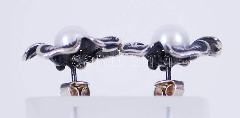 Ezüst (Ag) fülbevaló pár tenyésztett gyönggyel /