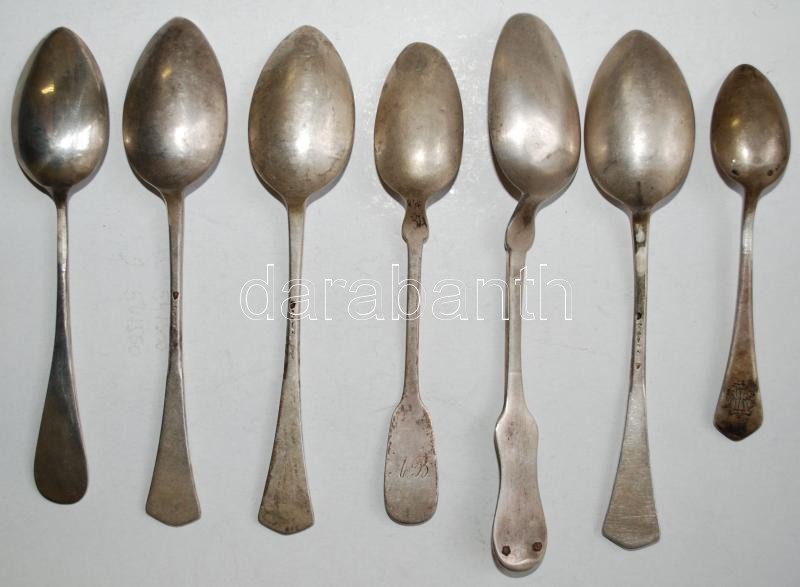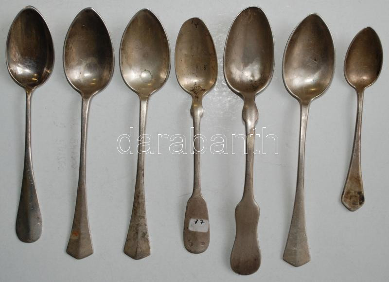 cca 1900 7db jelzett, mesterjegyes, ezüst (Ag) kiskanál, kettő címerre...