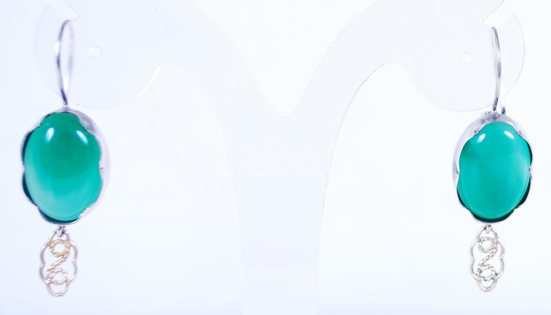 cca 1940 Egy pár krizopráz fülbevaló ezüst (Ag) foglalatban /