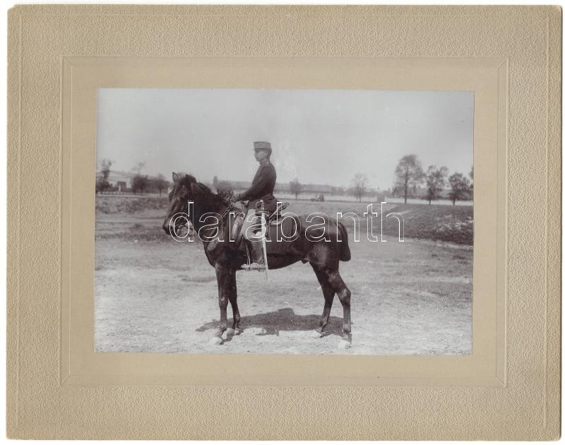 Cca 1910 Magyar lovas katona, Schaffer Ármint kemény hátú fotója, jelz...
