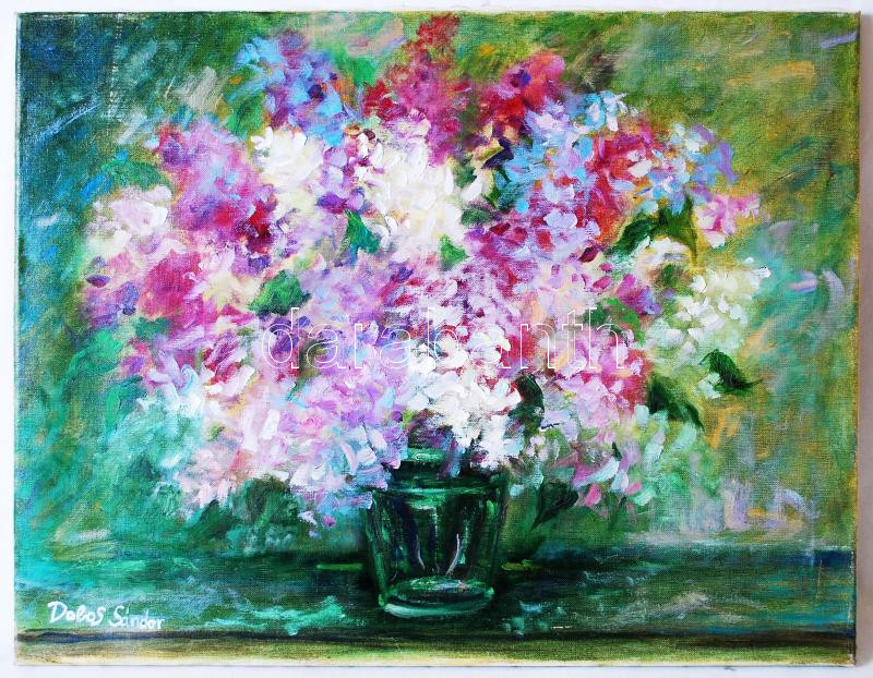 Dobos Sándor (1931-): Virágcsendélet. Olaj, vászon, jelzett, 50×65 cm
