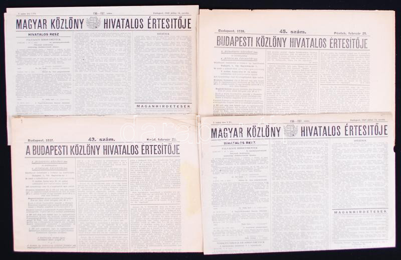 1937-1938/1948 A Budapesti Közlöny Hivatalos Értesítője és a Magyar Közlöny Hivatalos Értesítője 2-2 száma