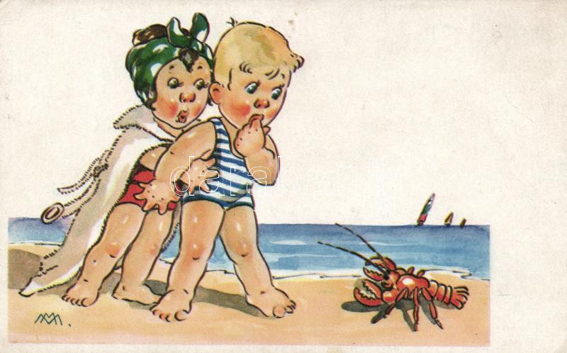 Children on the beach, s: M. M. (fl)