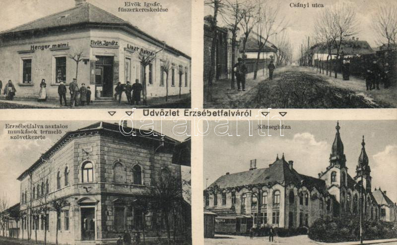 Budapest XX. Erzsébetfalva, Pestszenterzsébet, Eivök Ignác fűszerkereskedése, asztalos termelőszövetkezet, Csányi utca