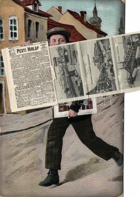 Budapest újságos fiú a Pesti Hírlappal, leporello