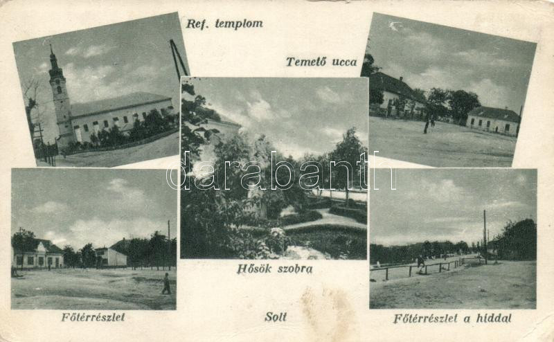 Solt Fő tér, Temető utca, Hősök szobra, református templom (EB)
