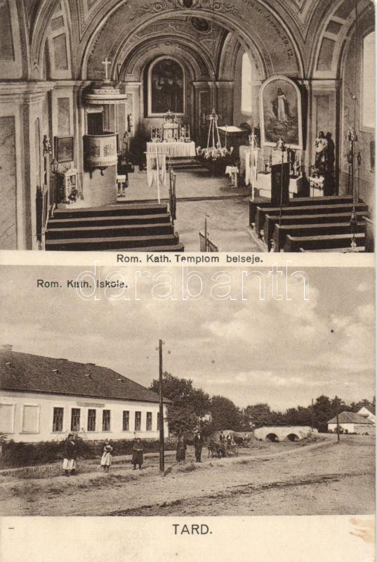 Tard katolikus templom belső, katolikus iskola (Rb)