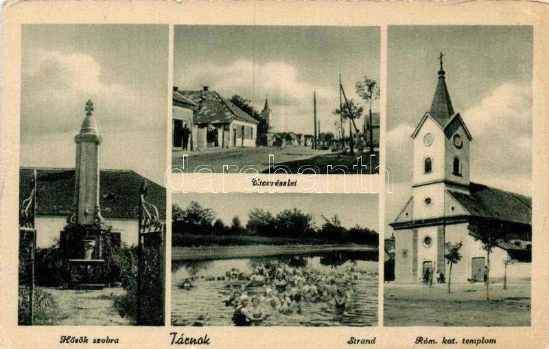 Tárnok strand, katolikus templom, Hősök szobra (kis szakadás / small tear)