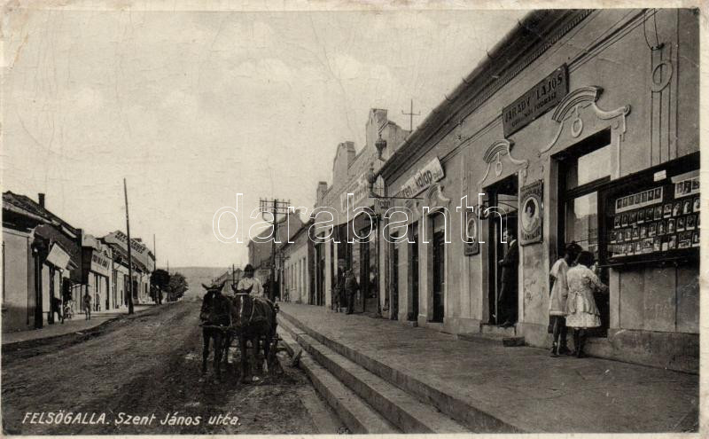 Tatabánya - Felsőgalla Szent János utca, Várady Lajos fodrászüzlete, Irén kalapszalon, könyvesbolt (b)