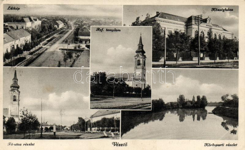 Vésztő református templom, községháza, Fő utca, Kőrös part (fa)