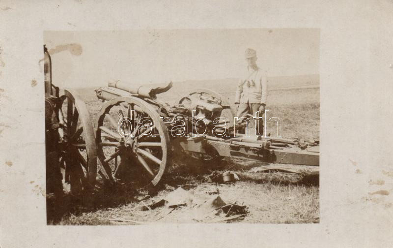 K.u.k. soldier with damaged cannon, photo (small tear)
