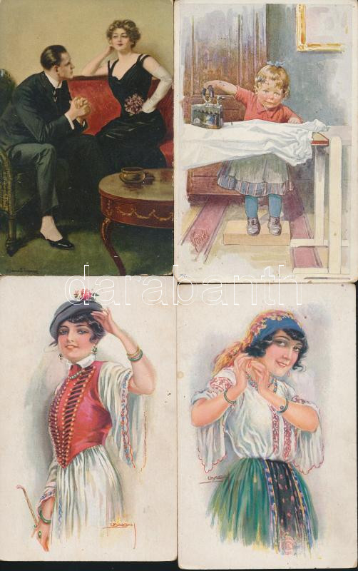 29 db régi művészi képeslap, közte Usabal, Feiertag, Clarence F. Underwood / 29 topic postcards, mainly Art