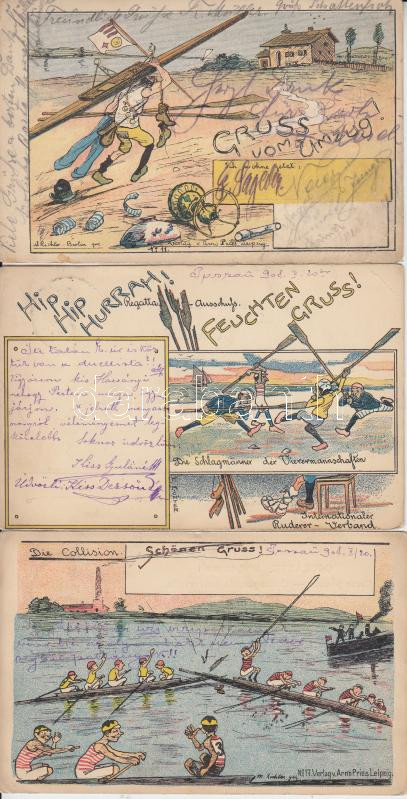 3 db humoros evezős grafikai lap M. Richter szignóval / 3 Funny rowing...