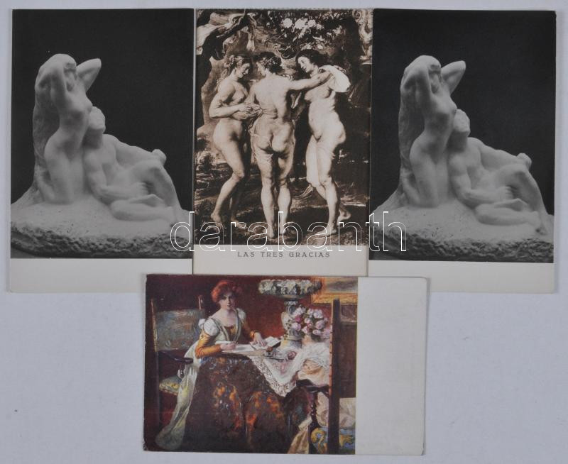 Művészeti és üdvözlő lapok, nagyrészt régi anyag, 116 db