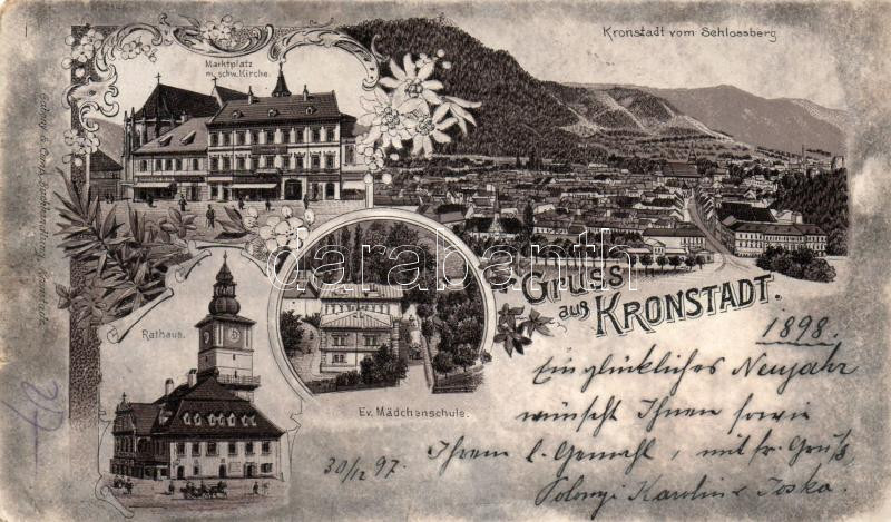 1898 Brassó market place, town hall, evangelical girl school, litho (small tear)