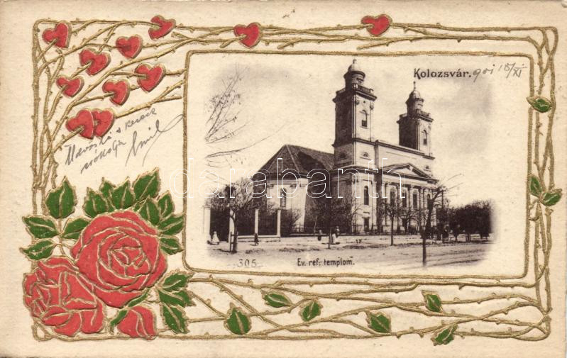 https://www.darabanth.com/en/181-Online-auction/181.0/Postcards/Transylvania~400006/Kolozsvar-Calvinist-church-floral-frame-Emb~II647304