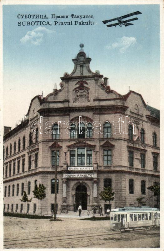 https://www.darabanth.com/en/181-Online-auction/181.0/Postcards/Vojvodina~400010/Szabadka-Faculty-of-Law-plane-tram-vissza-So-Stpl~II644154