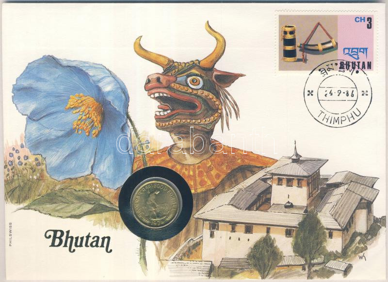 https://www.darabanth.com/en/182-Online-auction/182.0/Numismatics/Envelopes-with-Coins-and-Banknotes~400425/Bhutan-1974-20c-ermes-belyeges-boritekon-ismertetovel-T2-3Cbr3EBhutan-1974-20-chetrums-on~II533824