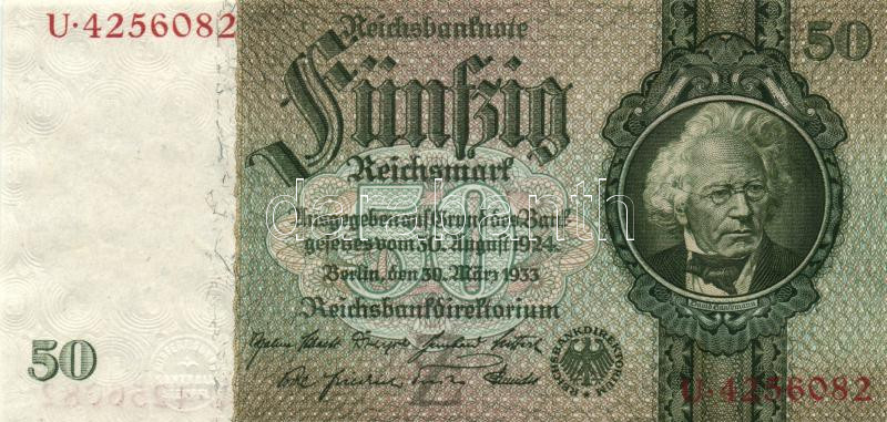 Német 3. Birodalom 1933. 50M (3x) egymásutáni hétjegyű sorszámmal és H... https://www.darabanth.com/en/182-Online-auction/182.0/Numismatics/Foreign-banknotes~400432/Nemet-3-Birodalom-1933-50M-3x-egymasutani-hetjegyu-sorszammal-es-Hansemann-vizjellel-TI~II650340