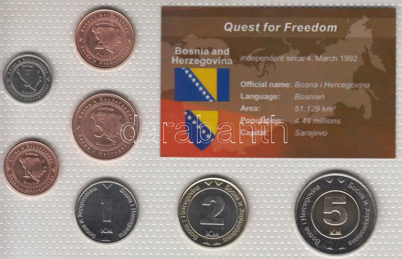 Bos... https://www.darabanth.com/en/182-Online-auction/182.0/Numismatics/Foreign-coins~400433/Bosznia-Hercegovina-2003-2008-5f--5KM-7klf-laminalt-szettben-T1-3Cbr3EBosnia-and-Herzegovina-2003~II652820