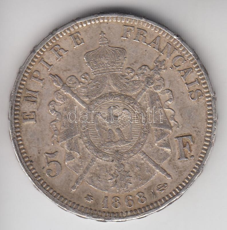 Franciaország / Második Birodalom 1868A 5Fr Ag "III. Napóleon&quo... https://www.darabanth.com/en/182-Online-auction/182.0/Numismatics/Foreign-coins~400433/Franciaorszag-Masodik-Birodalom-1868A-5Fr-Ag-III-Napoleon-Parizs-2512g-T2-2--3Cbr3EFranc~II640878