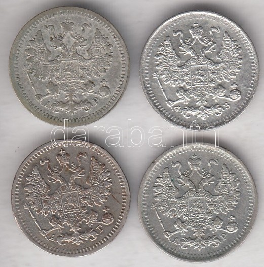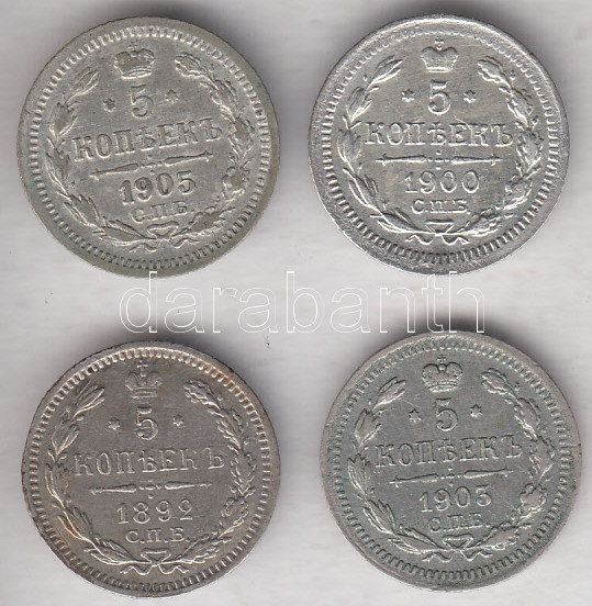 Oroszország 1892. 5k Ag + 1900. 5k Ag + 1903. 5k Ag + 1905. 5k Ag T:2,... https://www.darabanth.com/en/182-Online-auction/182.0/Numismatics/Foreign-coins~400433/Oroszorszag-1892-5k-Ag-plus-1900-5k-Ag-plus-1903-5k-Ag-plus-1905-5k-Ag-T2-2--3Cbr3ERussia-1892-5-kopeks~II654097