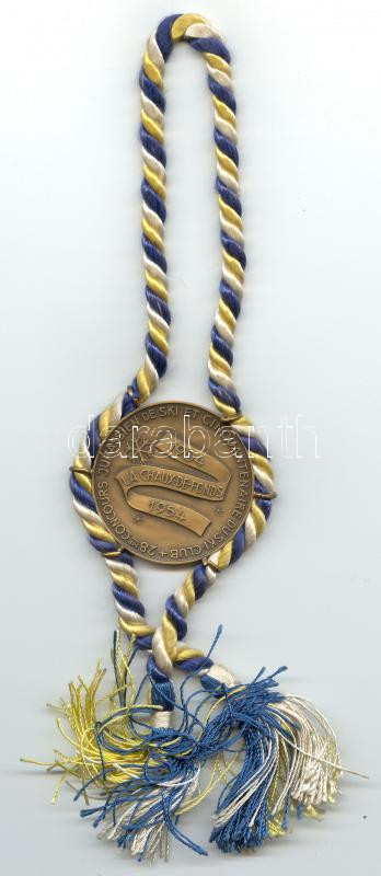 Description: Franciaország 1954. "La Chaux De Fonds" sí klub Br emlékérme az 50. évfordulóra szalaggal szign.: Huguenin T:1
