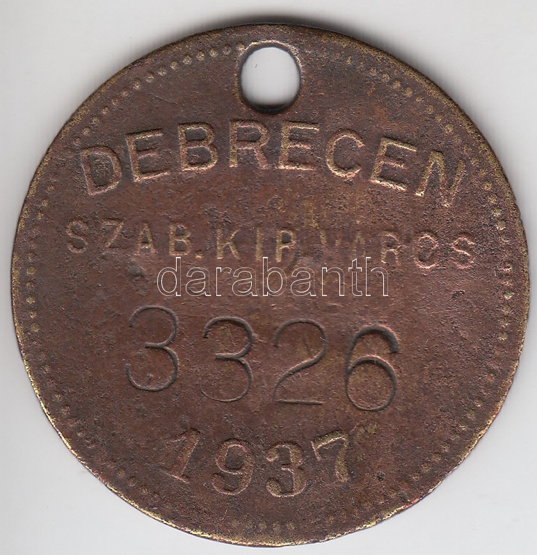 1937. Debreceni kutyabárca "3326"-os sorszám beütéssel T:3