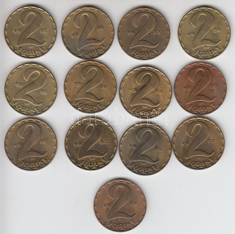 https://www.darabanth.com/en/182-Online-auction/182.0/Numismatics/Hungarian-metal-and-silver-coins~400429/1975-1985-2Ft-13x-mind-klf-kivetel-1979-es-T1-2~II655774
