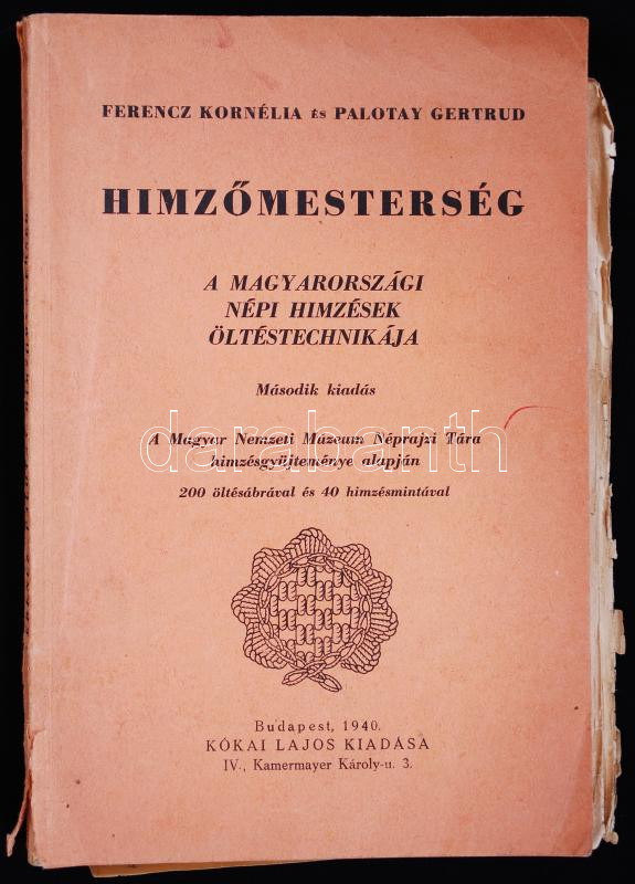 A magyarországi népi hímzések öltéstechnikája. Budapest 1940. Kókai Lajos Kiadása. Kisebb szakadásokkal