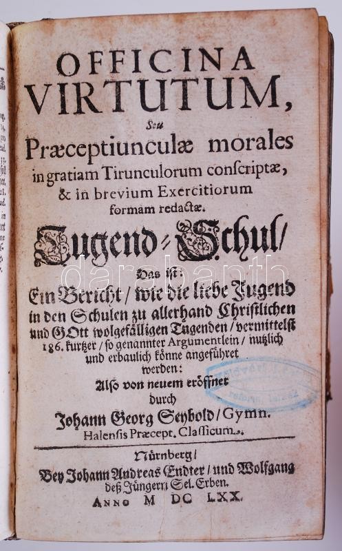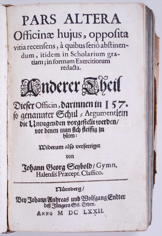 Georg Seybold: Officina scholastica. + Pars altera Officina virtutum ... https://www.darabanth.com/en/182-Online-auction/182.0/Other-collectibles/Books-Religion~400034/Georg-Seybold-Officina-scholastica-plus-Pars-altera-Officina-virtutum-720p-plus-165p-plus-136p-1670-167~II651262