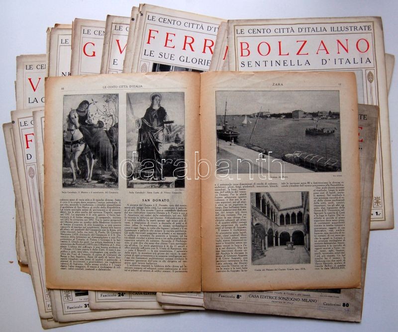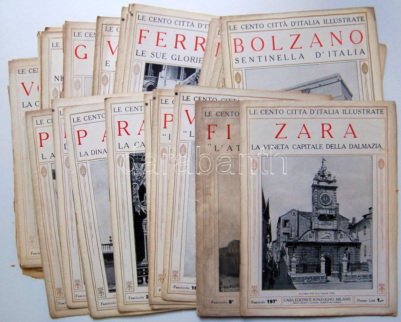cca 1930 Itália 100 városa sorozat 27 száma, benne Pola, Fiume és Zadar is. 3 kivételével nagyon jó állapotban / Le Cento Citta D`Italia Illustrate 27 city tourist gudies with pictures. Expept for three issues, all in very good condition